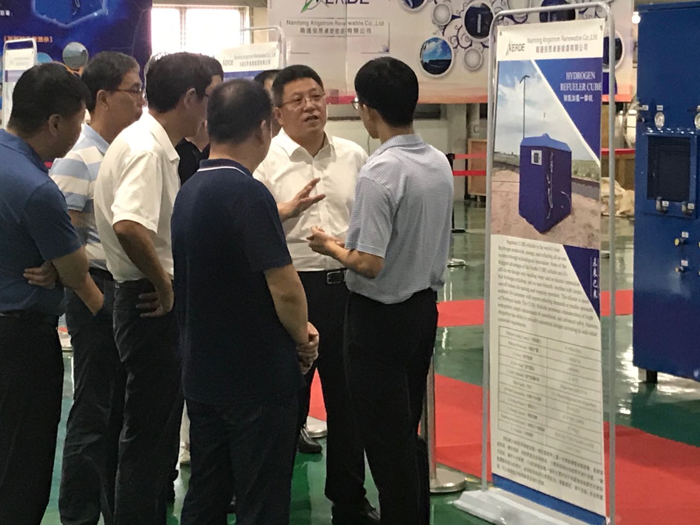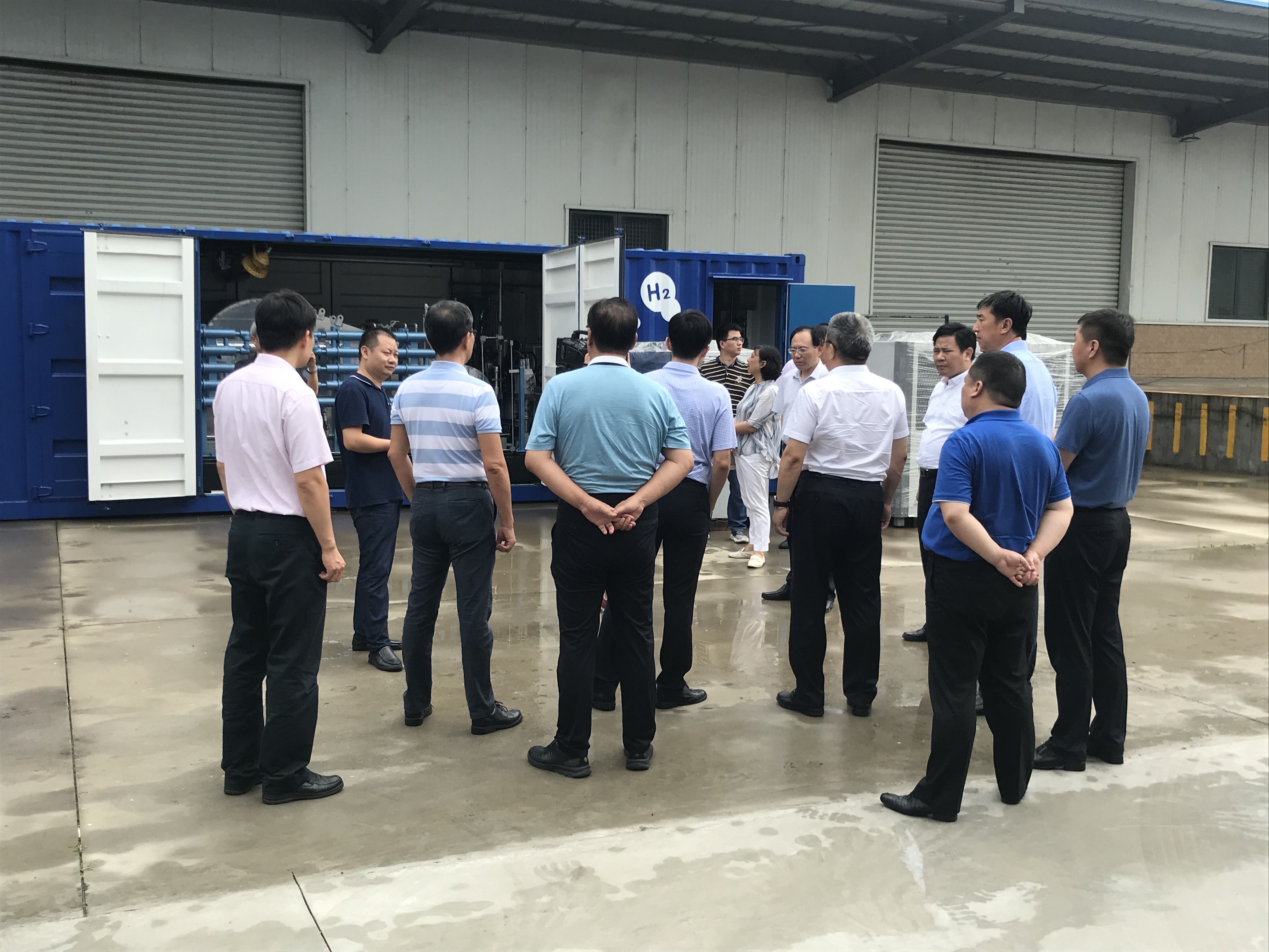 南通安思卓總經理倪海寧、技術總監高小平博士熱情接待了來訪領導。并向來訪領導介紹了安思卓獨立研發制造的撬裝式500標方集成化可再生能源制氫設備、全球首臺撬裝式集制氫、儲氫、加氫功能于一體的VERDE-CUBE 10以及500KG撬裝式加氫站。此外李市長一行還參觀考察了南通安思卓生產車間、物聯網大數據平臺、業績展示區等。
